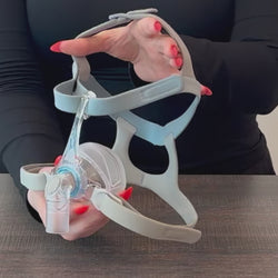 Le harnais intuitif offre des options d'ajustement aux patients, notamment la possibilité d'étirer le masque directement sur la tête.